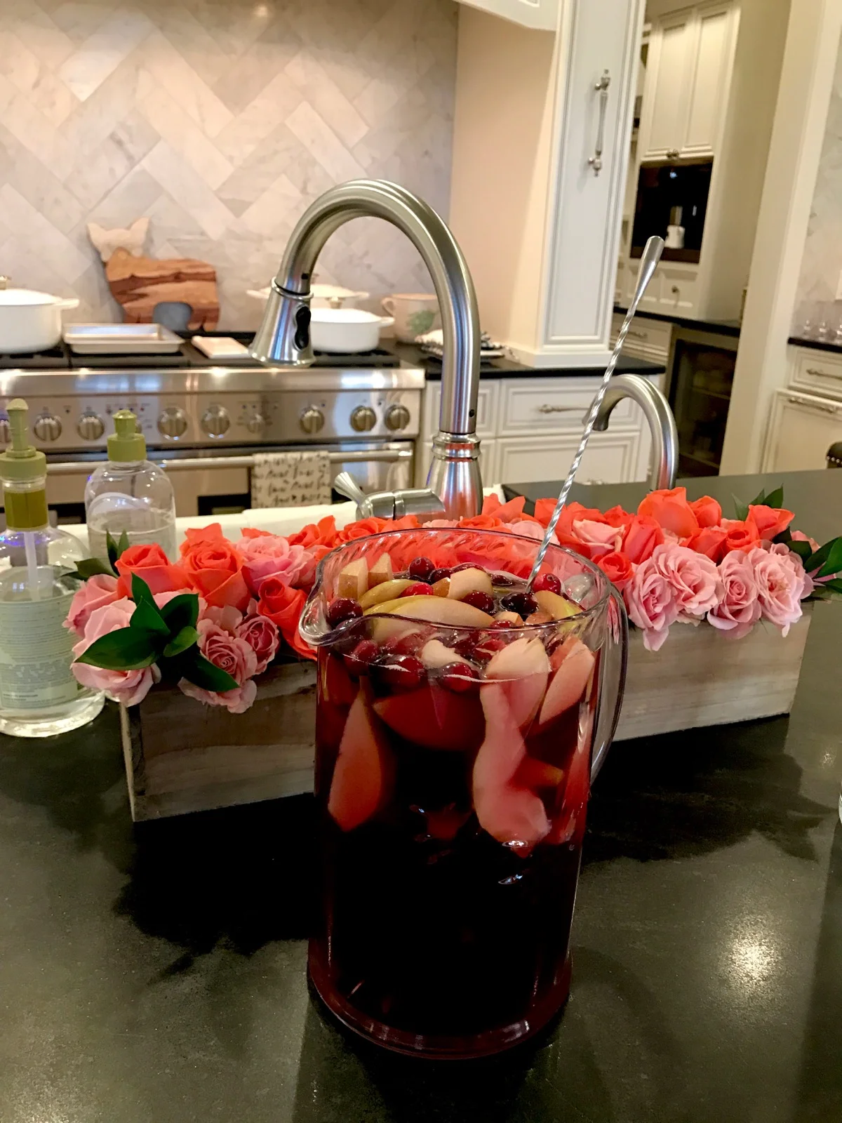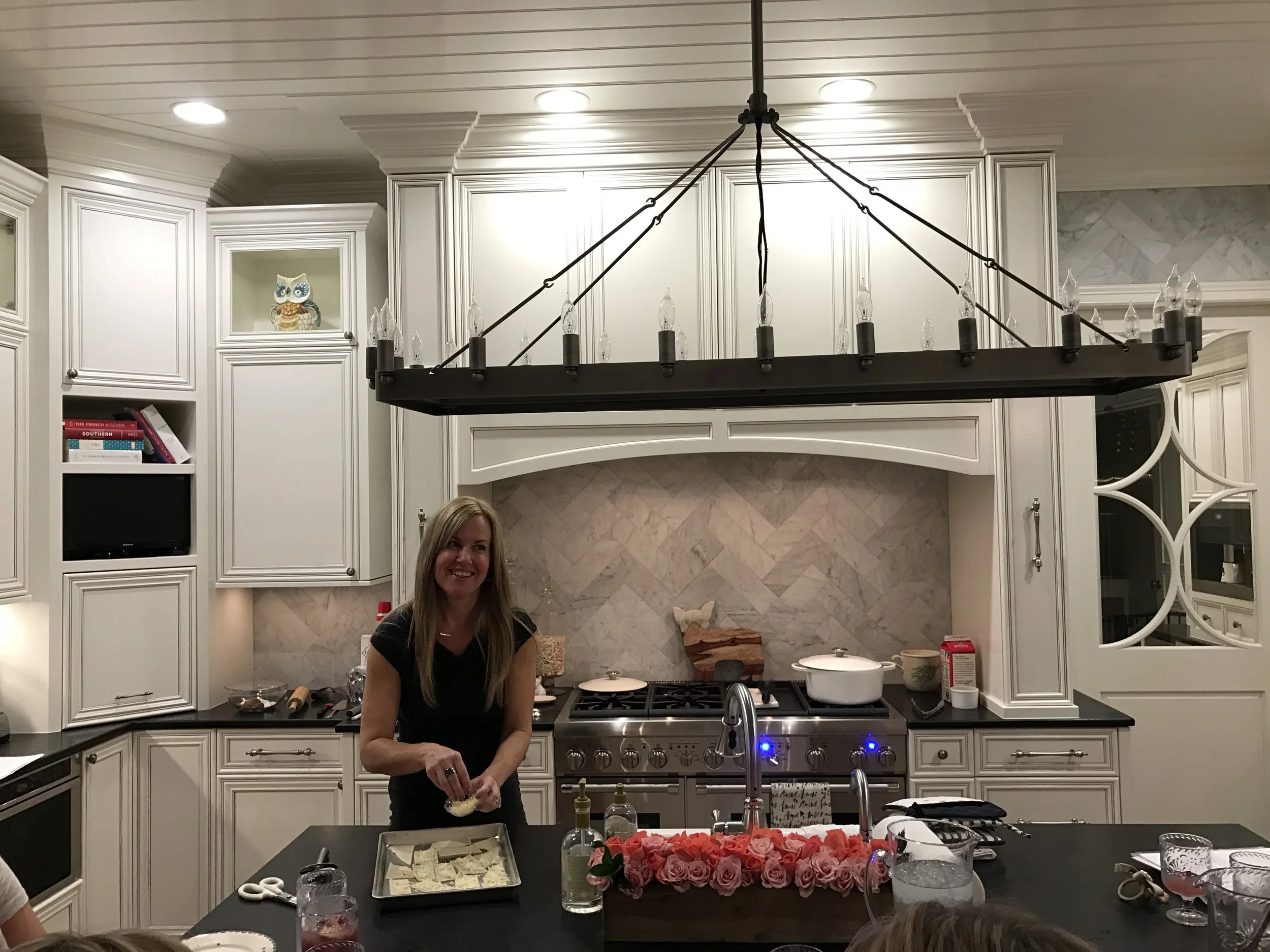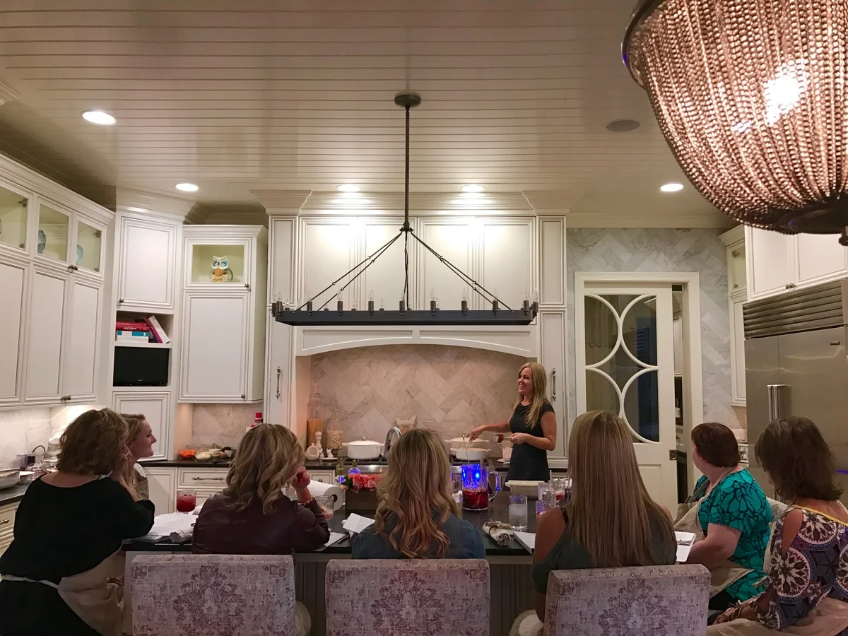 I like to make the Sangria a couple of hours before class so that the fresh fruit has time to soak up all the goodness. I pass it out right as class starts to kick off the cooking lesson right!