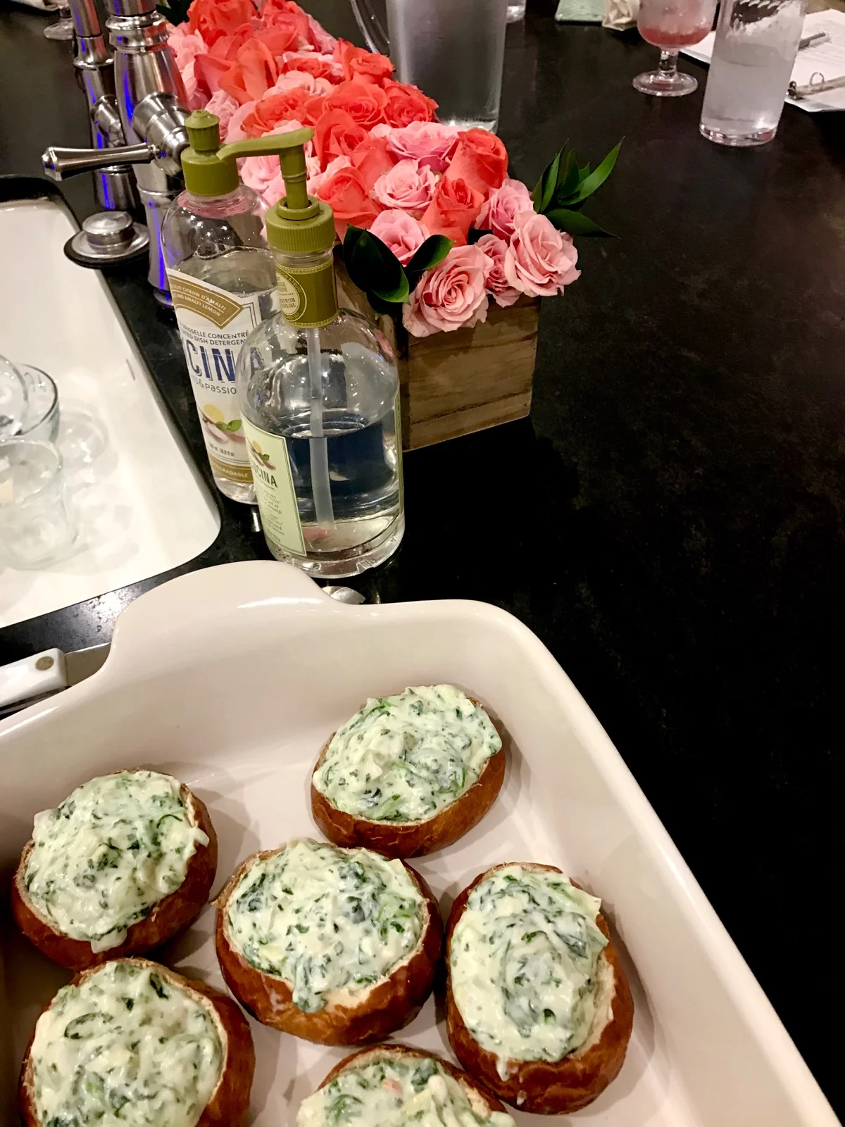 I made the dip two ways. 1. Baked in adorable pretzel boats. 2. Served separately with buttered pretzel bites.