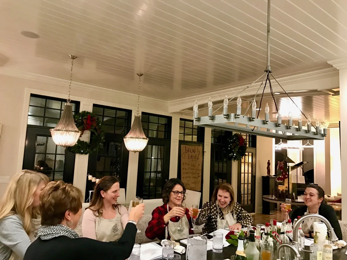 Bellinis on a Tuesday...yes please! We had a great time practicing our brunch skills tonight. Everyone left with an arsenal of brunch favorites they can whip up for Christmas Day: Festive Bellinis, French Egg Scramble, Sparkling Cinnamon Sugar Breakfast Cakes, Sausage and Biscuit Pull Aparts, and Holiday Parfaits.