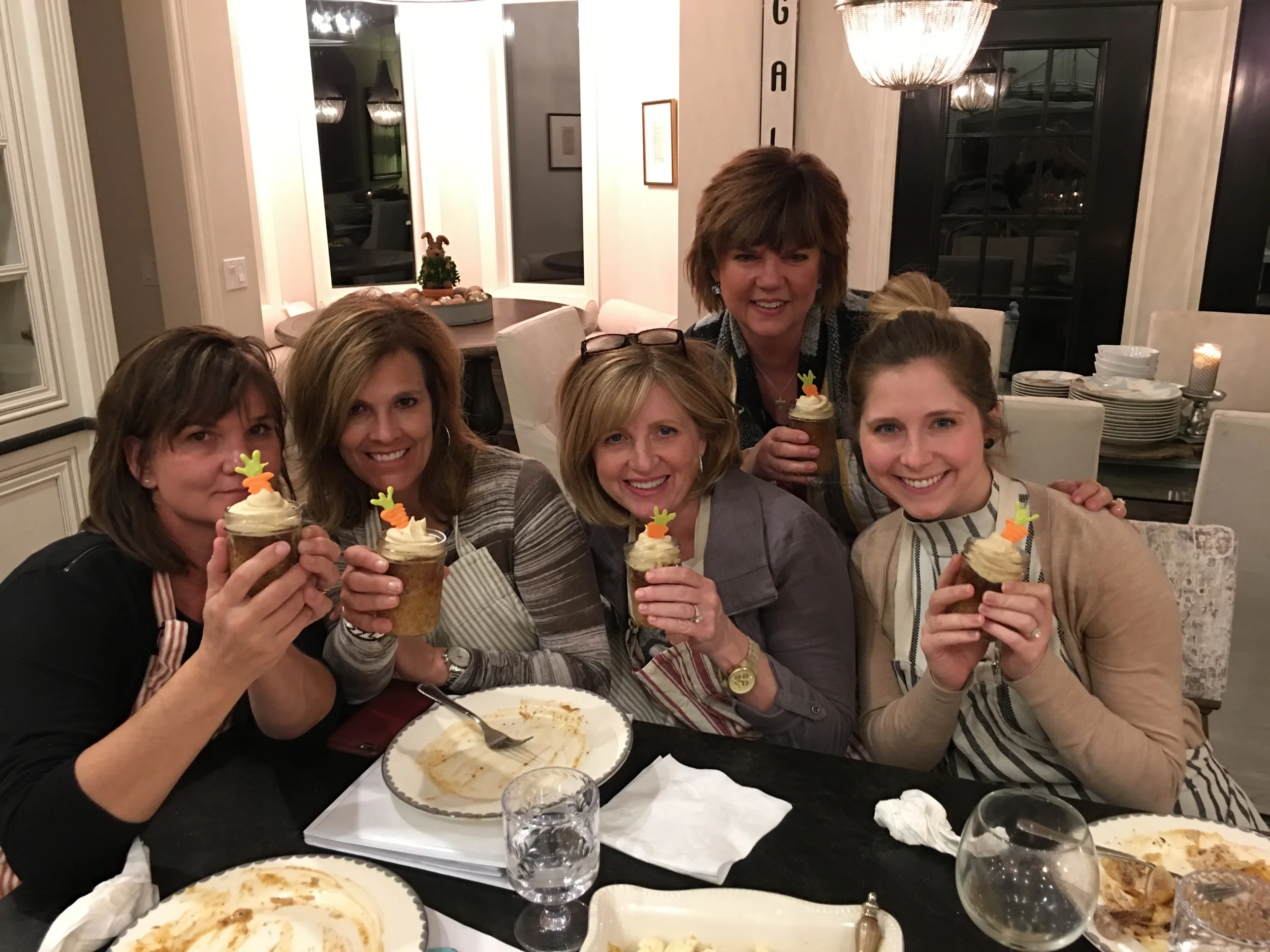 There's no better time to celebrate Spring! I had such a fabulous evening preparing this fresh spring menu with this bunch. Artichoke cheese squares, herb roasted chicken, spring vegetable and goat cheese tart...and yummy carrot cake in a jar!