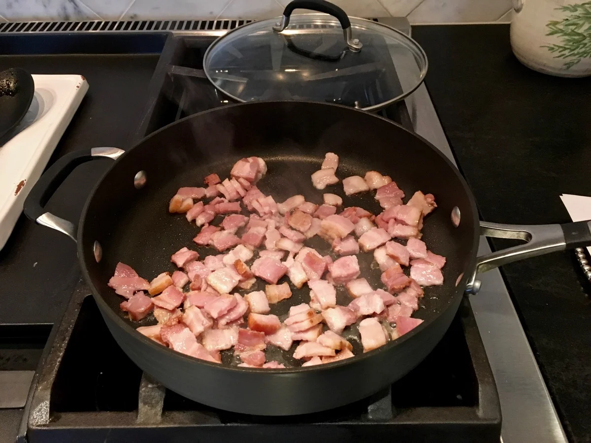 This tempting creamy verde sauce simmered and we moved onto the Mexican Haystacks. Can you go wrong with bacon? I don't think so...