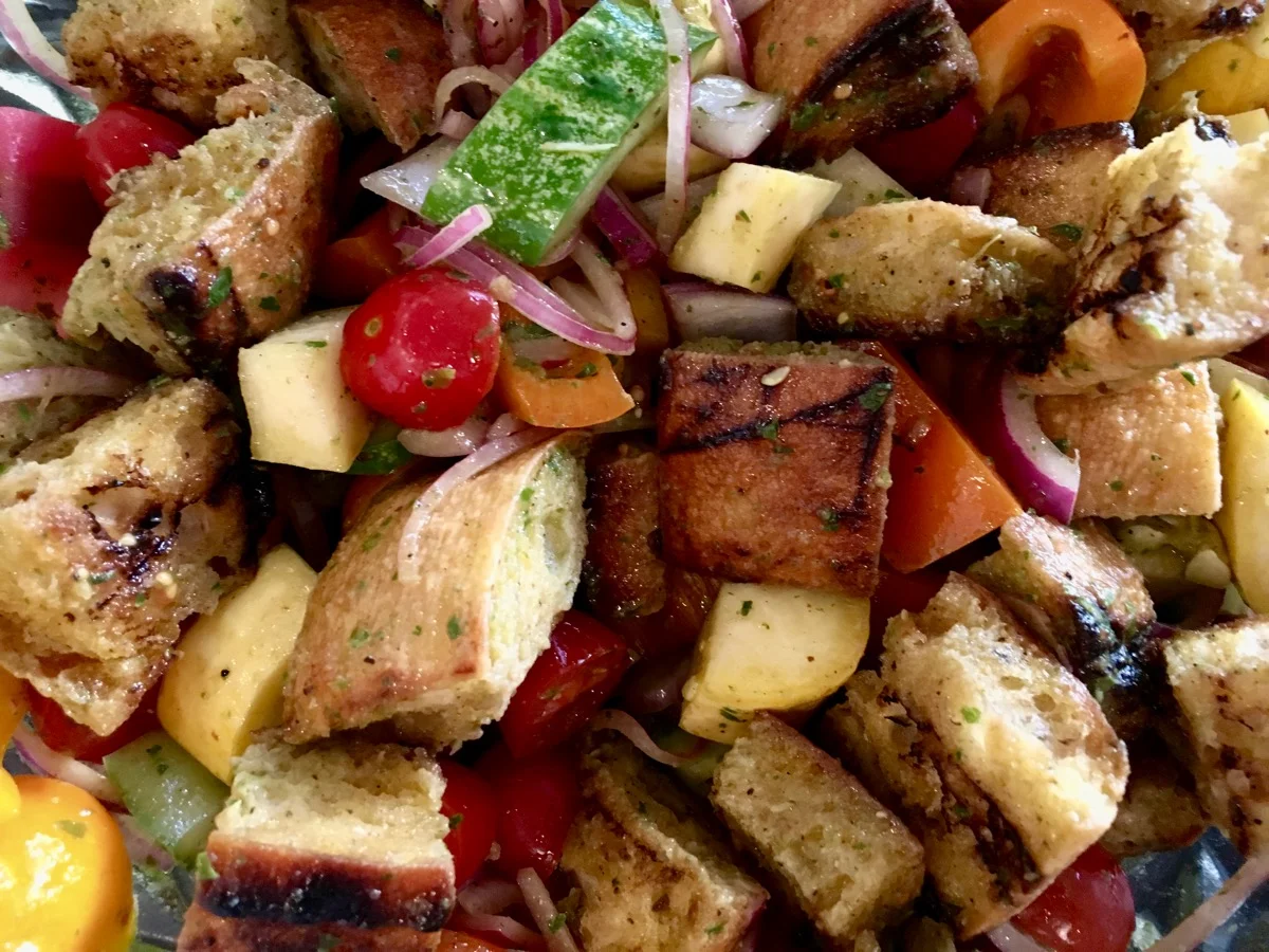 Next, we started on the Panzanella Salad. I had a couple of volunteers for my pepper cutting trick!