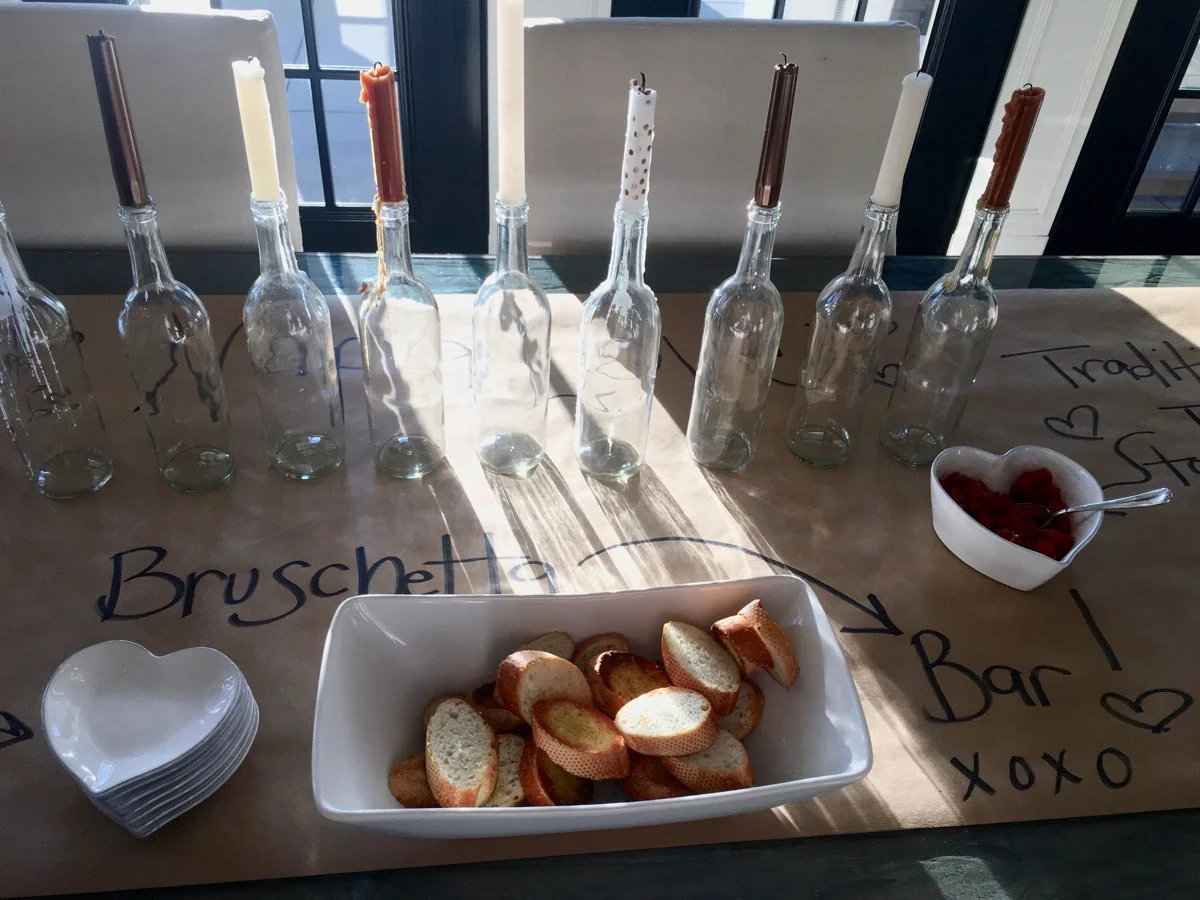 This menu...seriously. Bruschetta Bar with Sautéed Mushrooms, Herbed Goat Cheese, Sage Creamed Corn, and Traditional Tomato...I planned this menu around my experience in Italy and my love for Napa. For the main course, we prepared a Chopped Kale Salad with Warm Pancetta Vinaigrette and a Tuscan Pork Ragu. For dessert? A Chocolate Croissant Bread Pudding.