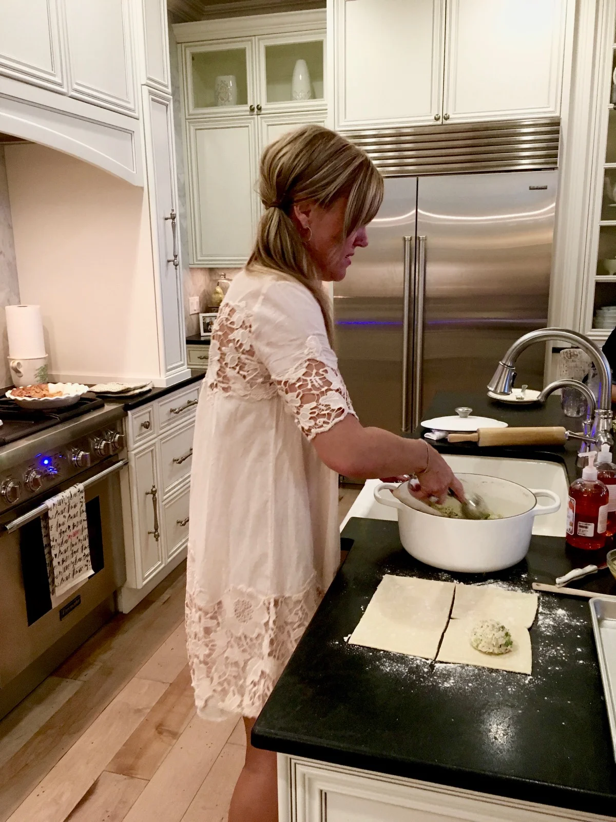 Next, we moved onto one of my favorite savory pies that I make for my family: Savory Chicken Puff Pastry. There's no reason to try to make your own puff pastry -- the ones in the frozen section work perfectly!