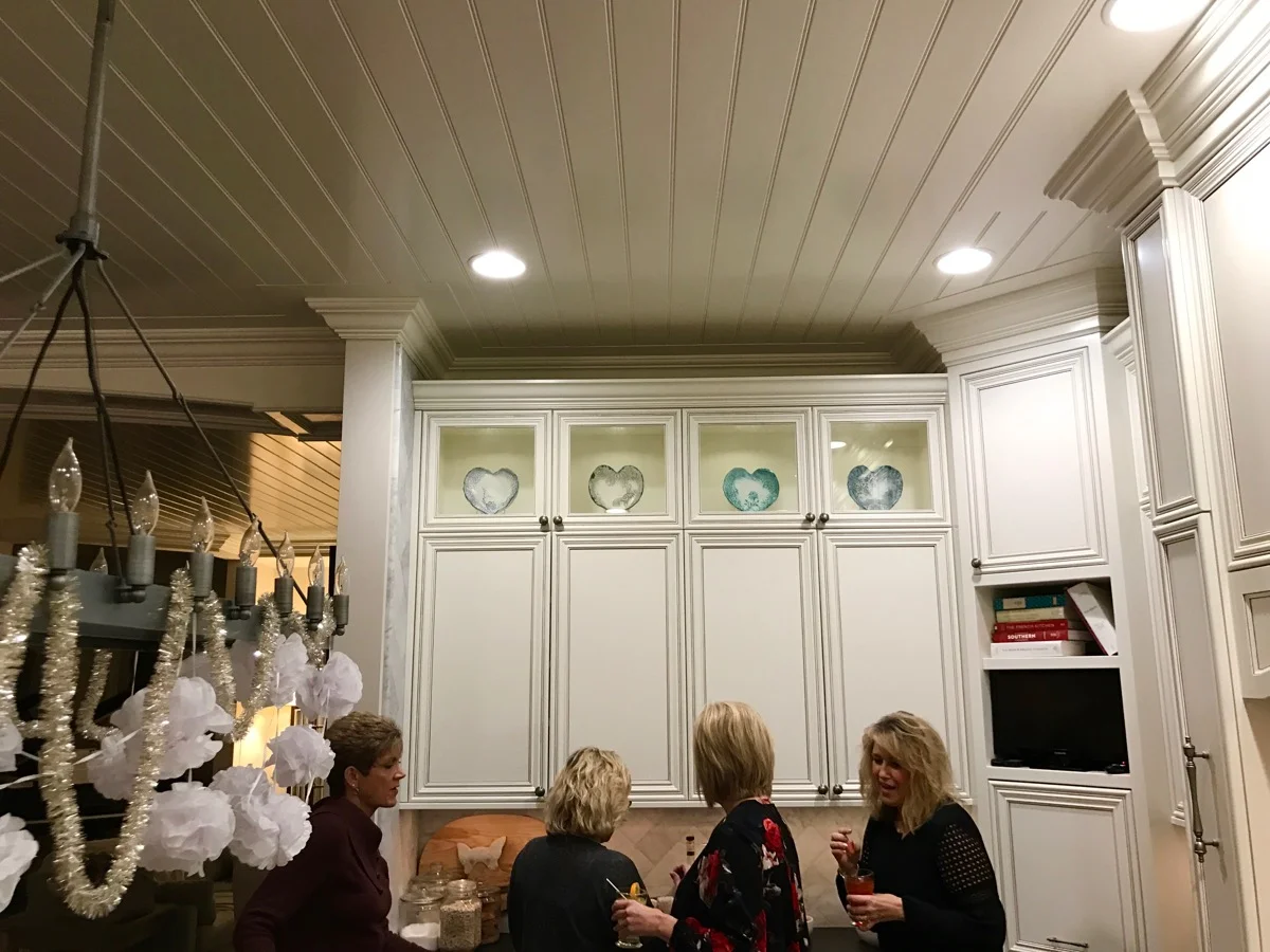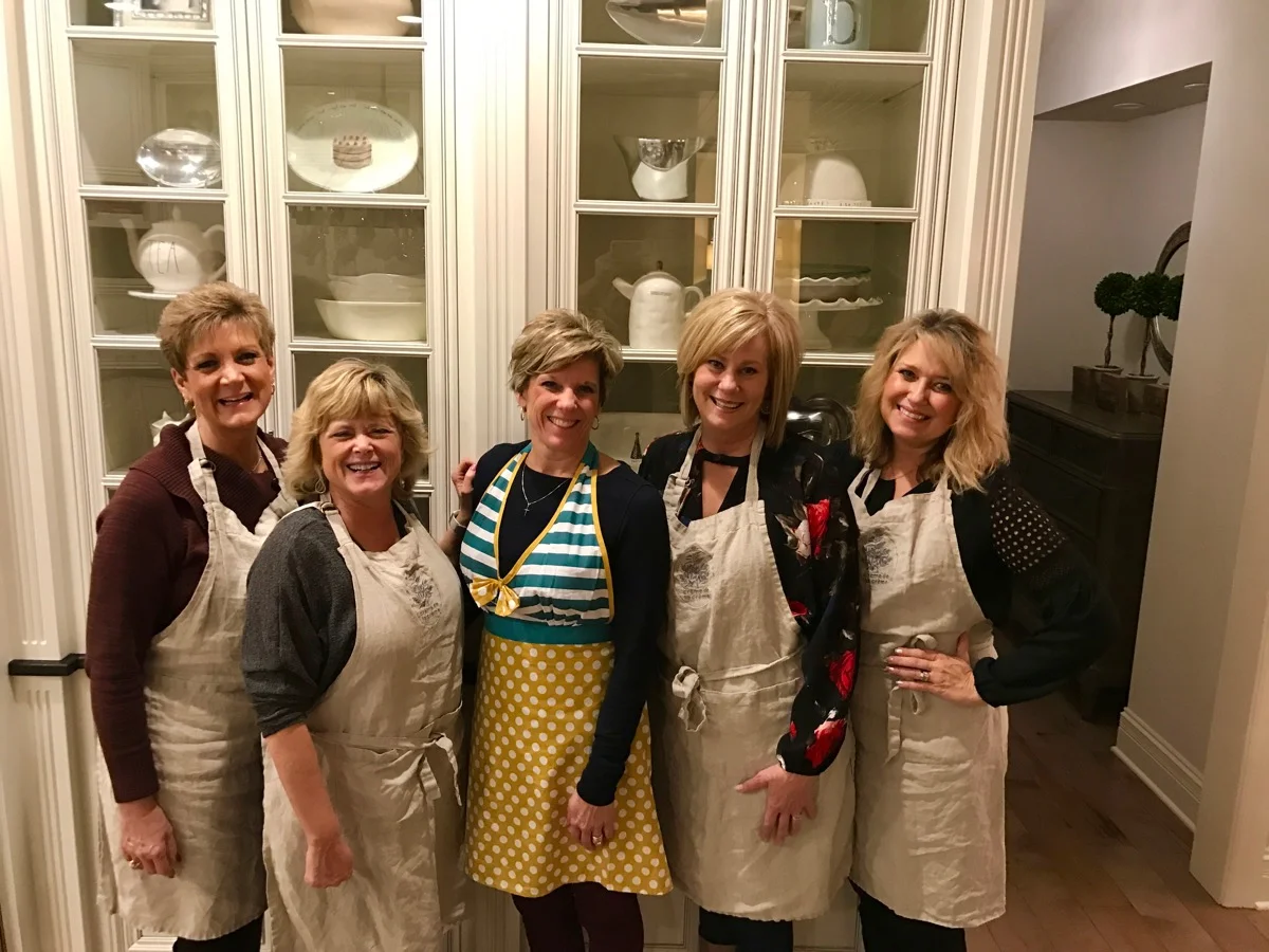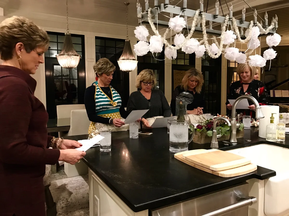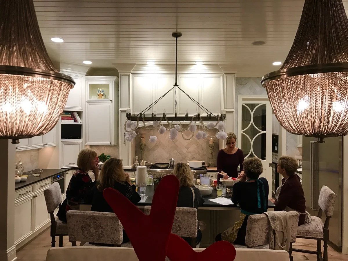 It was a special night at Crème de la Crème! We were celebrating Ann. Yay! After feeling cooped up the last few days with the ice storm, it was such a treat to get together with girlfriends. What was on the menu? Beef Filet Bites, Cracked Pepper Parmesan Dip with Kettle Chips, Buffalo Chicken Garlic Bread, Potato-tot Skewers, and a Beer Cocktail Station.