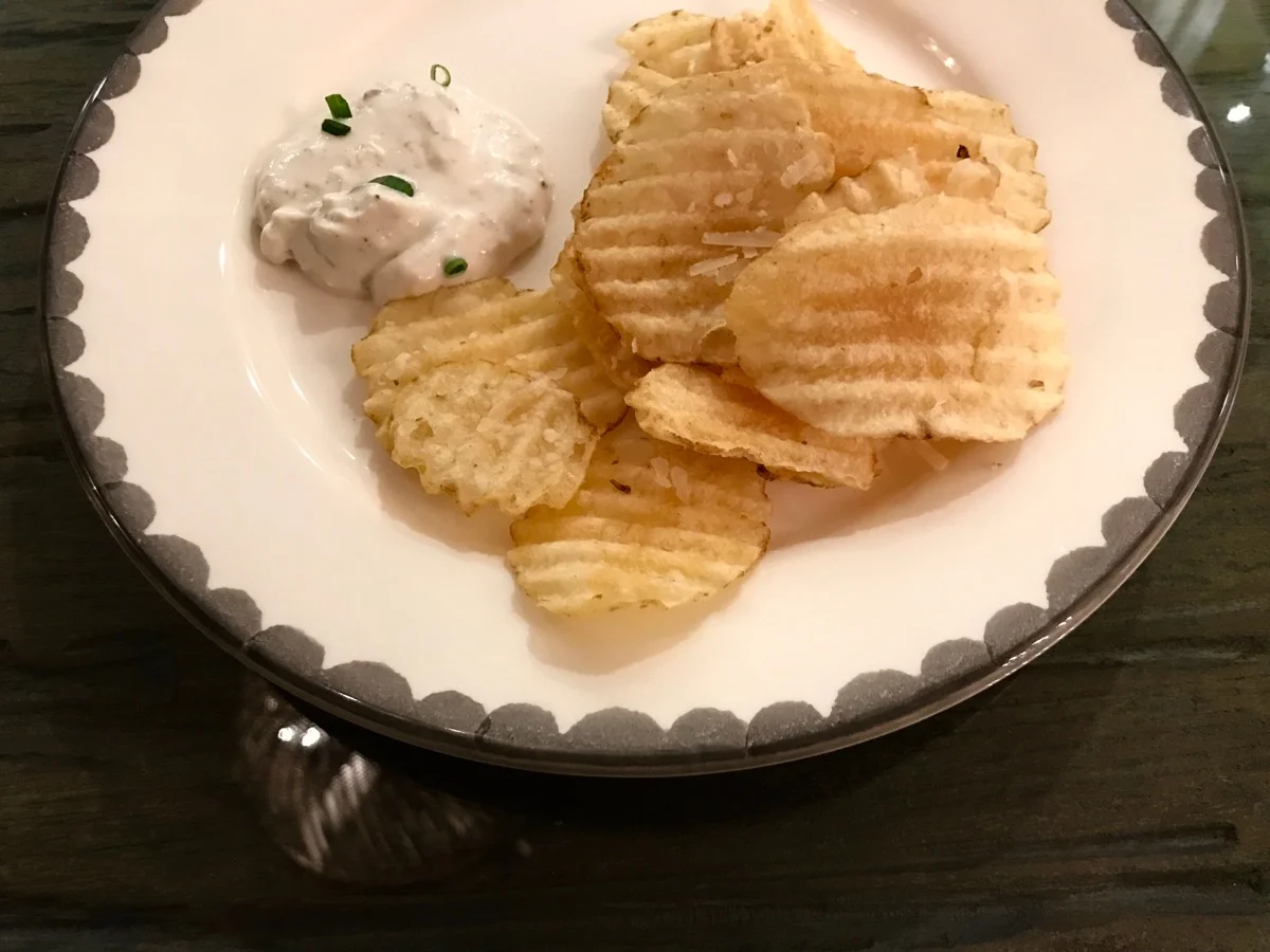 Warm kettle chips with fresh grated parmesan cheese kicked off the night. Pair it with my cool Cracked Pepper Parmesan Dip -- talk about addicting!