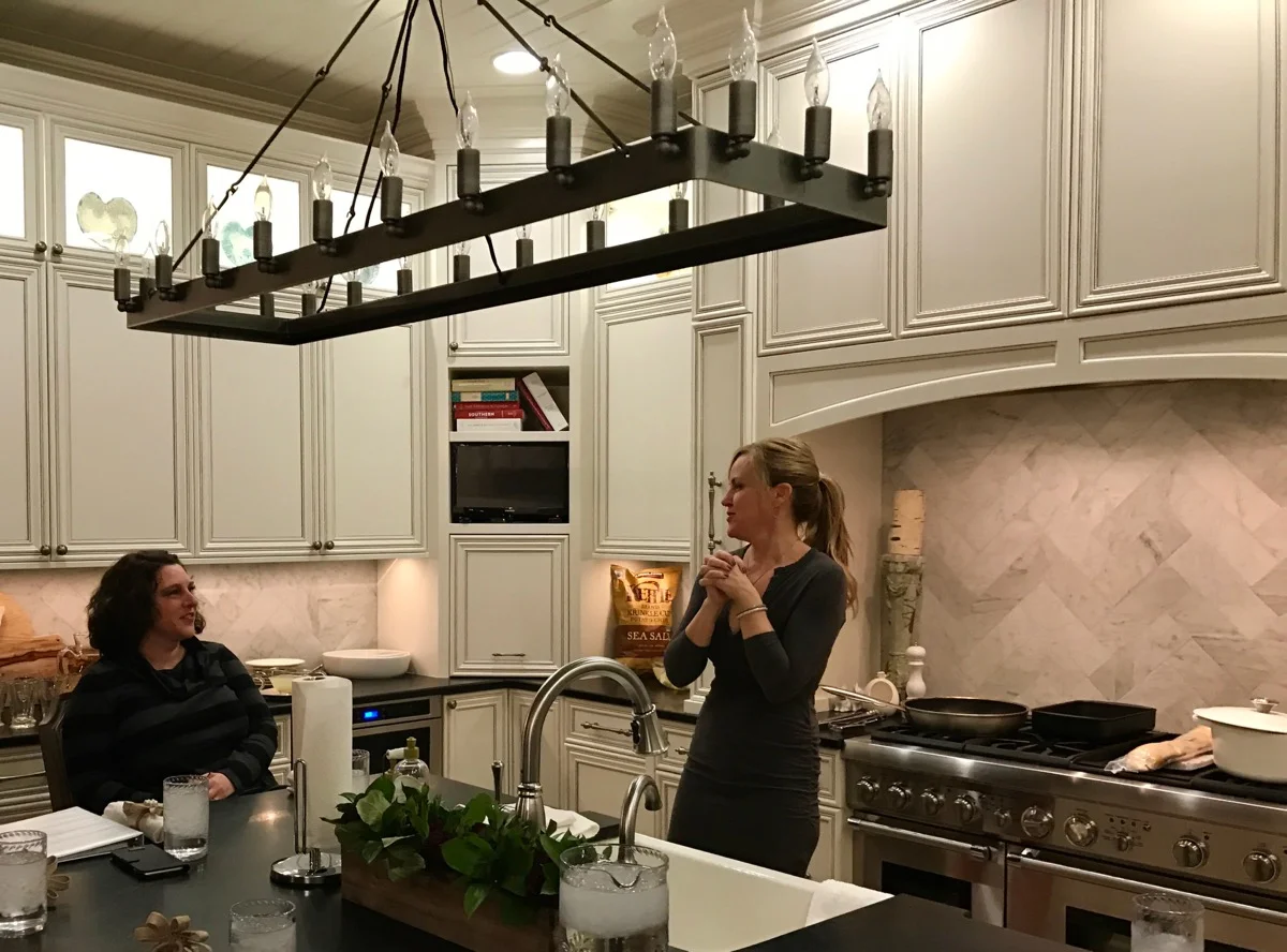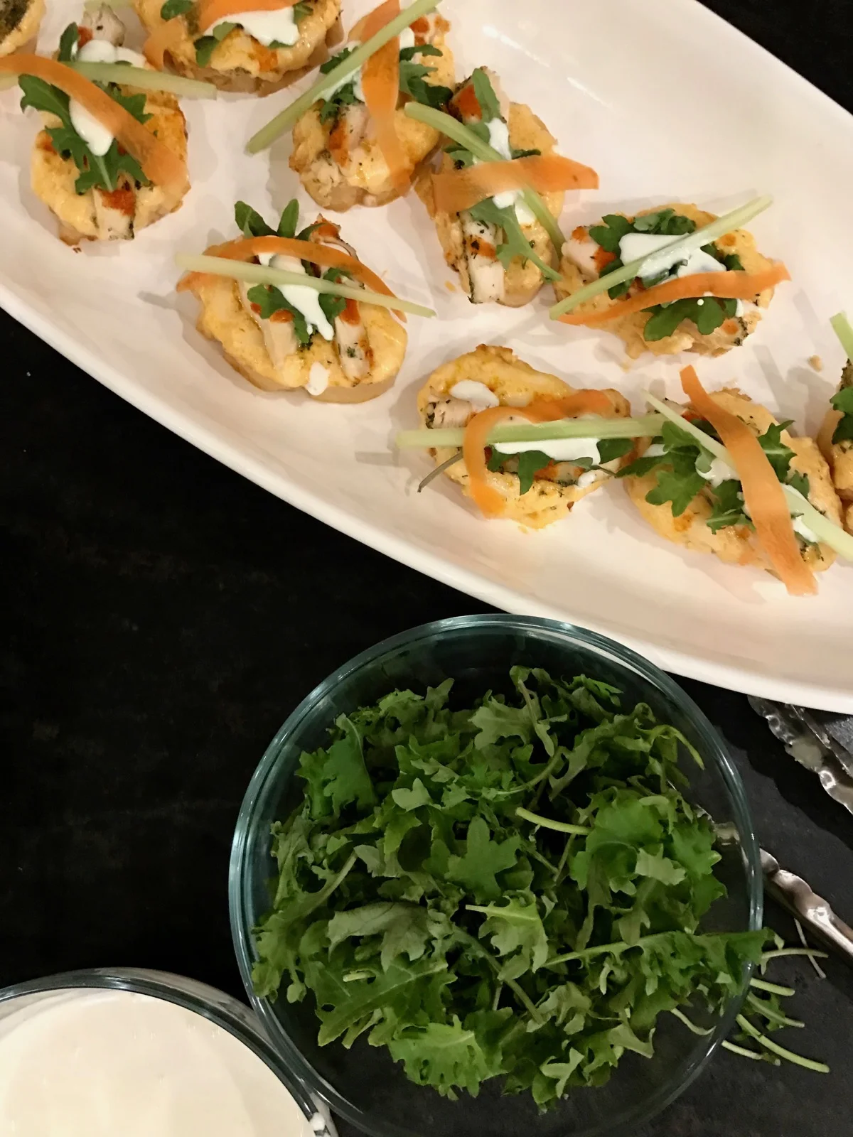 I loved that my students said that the Buffalo Chicken Garlic Bread recipe was the reason they booked this class! I had heard whispers from students the last few months desiring a buffalo chicken recipe. I went all out with layers of french bread, buffalo dip, generously seasoned chicken, more buffalo sauce, baby kale, a blue cheese drizzle, and thinly sliced carrots and celery. Presentation is everything!