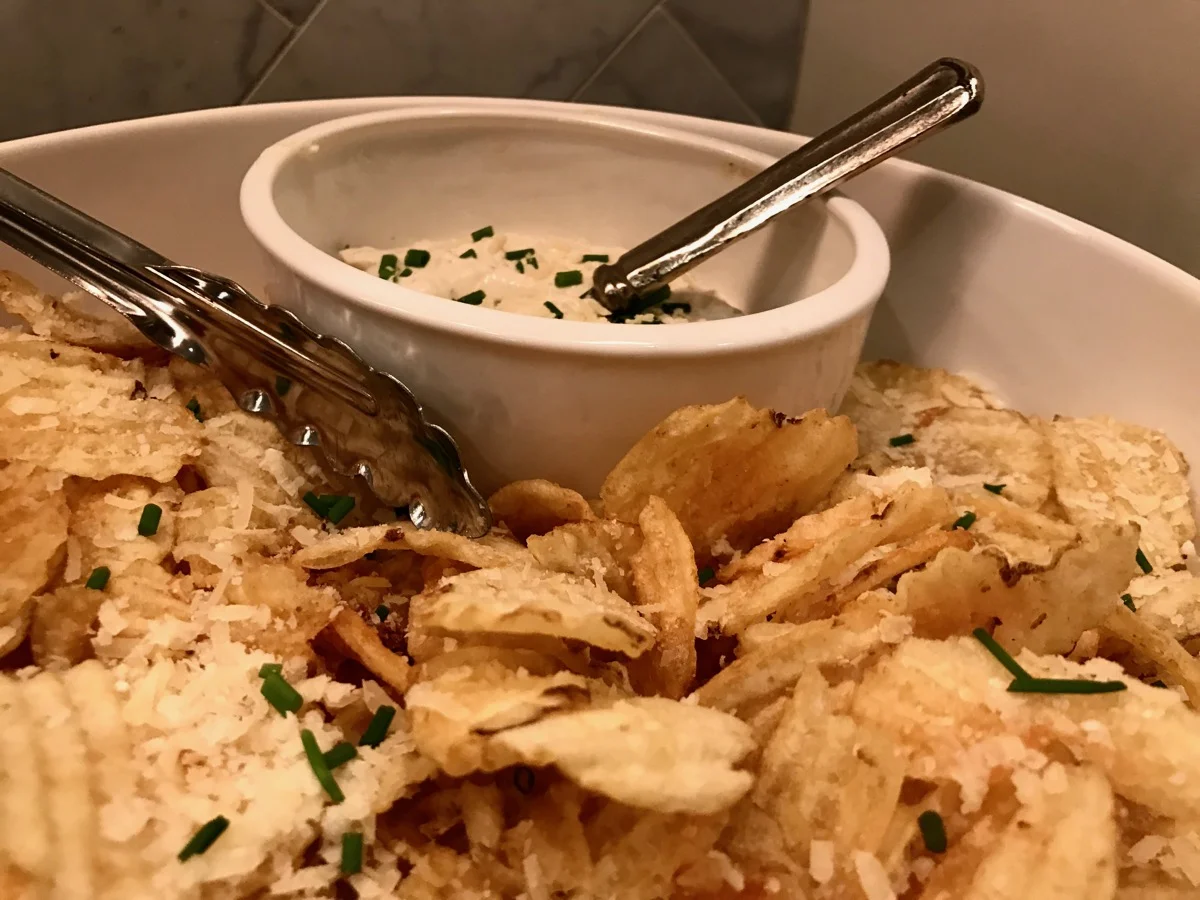 You can't say Super Bowl party without chips and dip. This isn't your mother's French Onion Dip though...the Cracked Black Peppercorn Parmesan Dip is definitely an elevated version. I like to warm up the kettle chips in the oven and sprinkle it with...hold your breath...more freshly grated parmesan cheese.