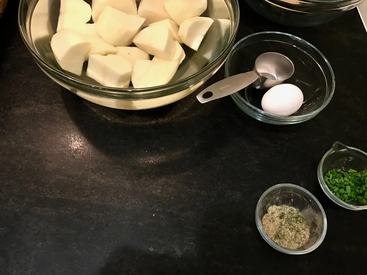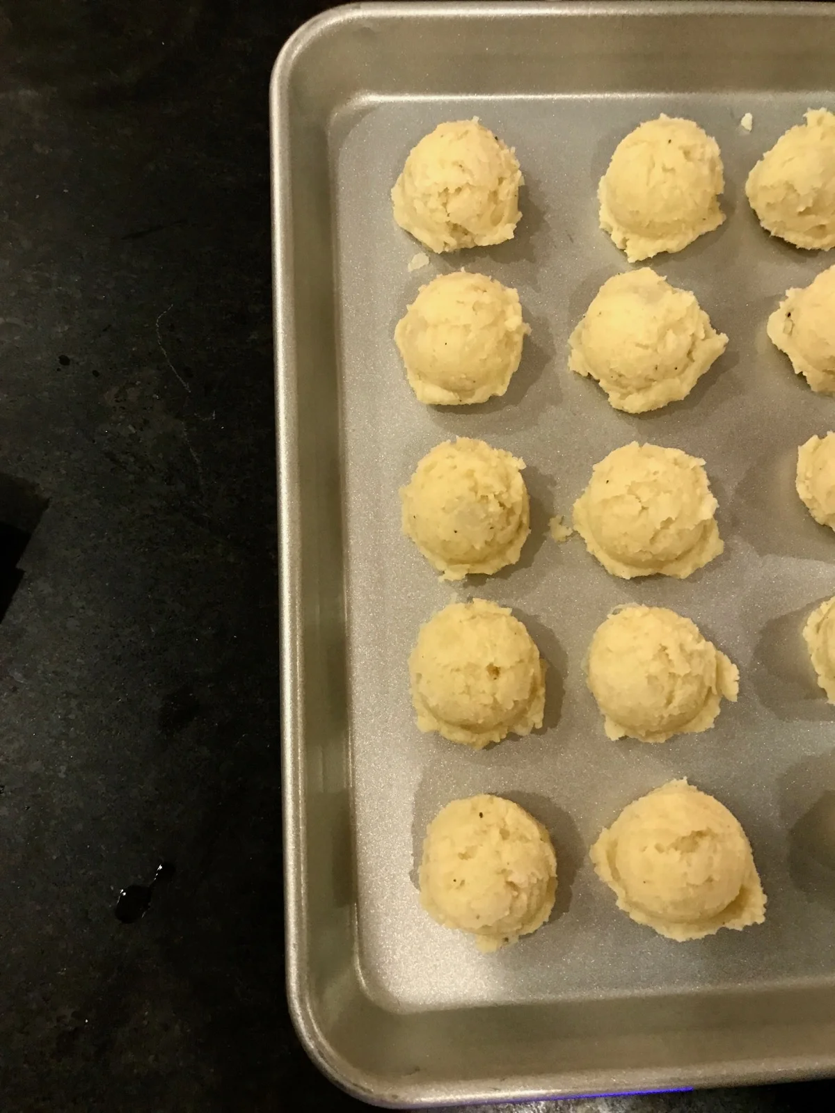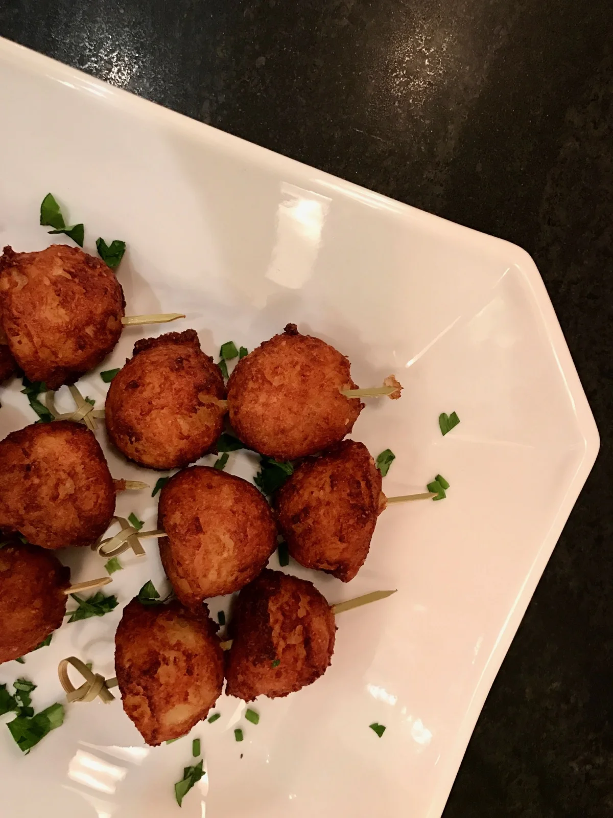 My final recipe of the evening was Potato-tot Skewers. This recipe utilizes the ever so fancy microwave to cook the potatoes. It makes for a quick, tender potato that can be combined with dry seasonings. I freeze the potato mixture in little balls to later flash fry. Don't forget the skewer. Did I mention presentation is everything?