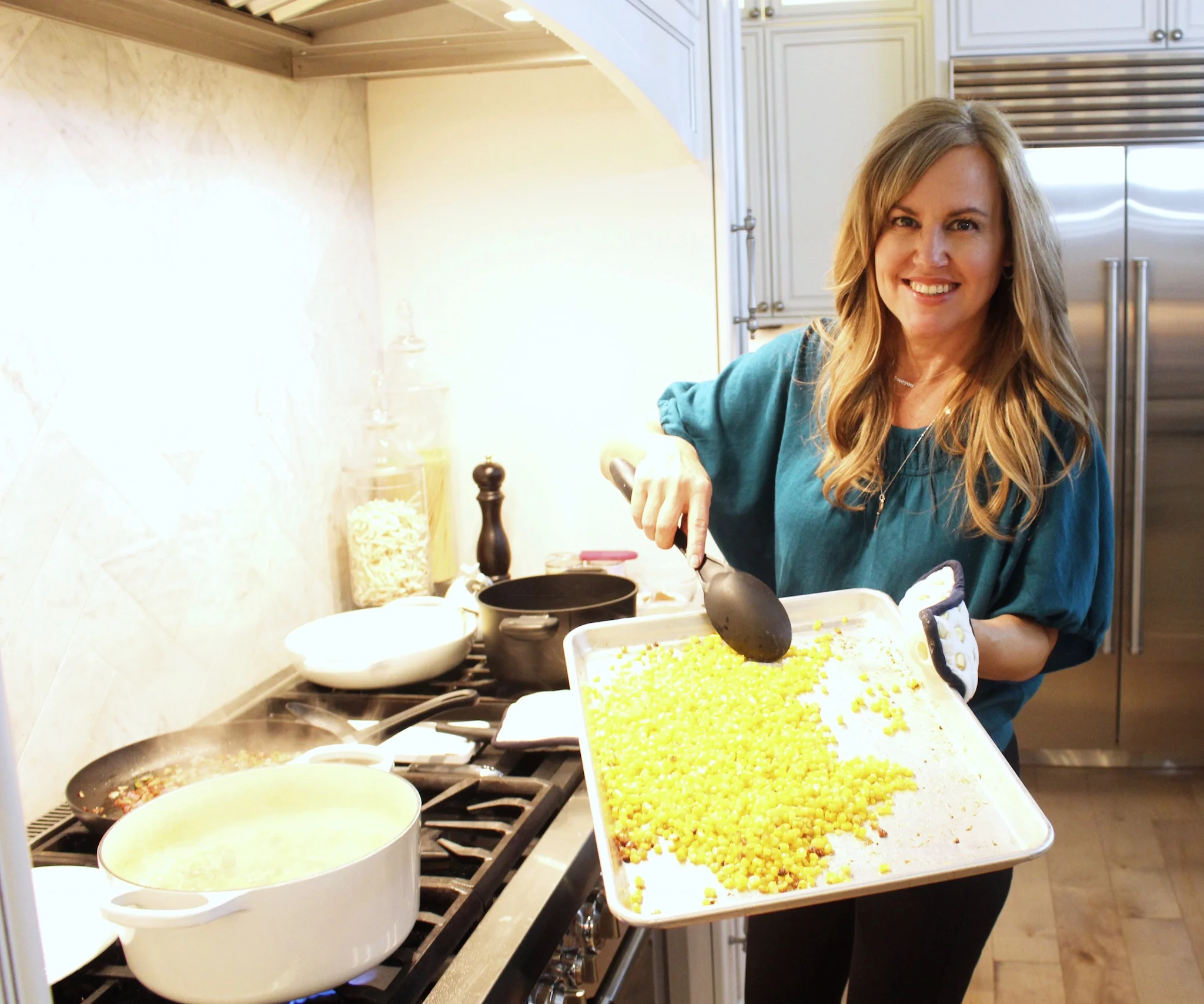 Now let's talk shrimp tacos. I pair Charred Mexican Corn with the Roasted Chipotle Shrimp. The shrimp is super quick and easy so we started on the corn. You can roast corn in the oven like you would other vegetable. Oil, salt, pepper...and roast away!