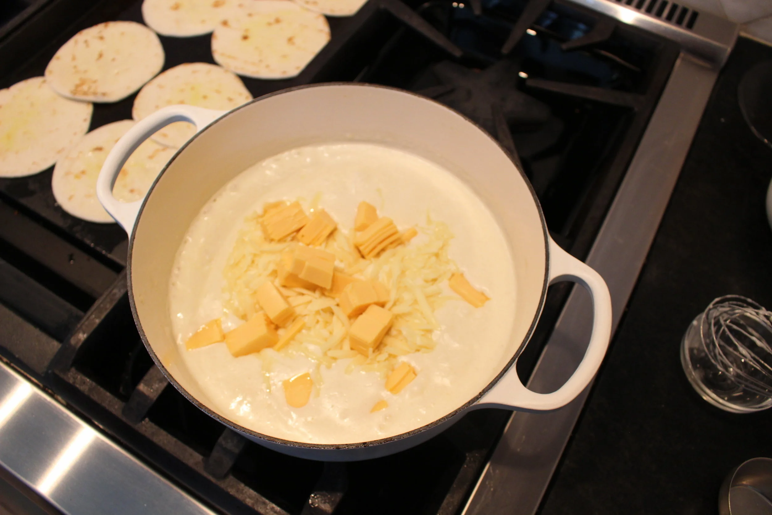 A creamy cheese sauce to compliment our chili. Topped with a toasted tortilla and a cilantro sprig for the finishing touch