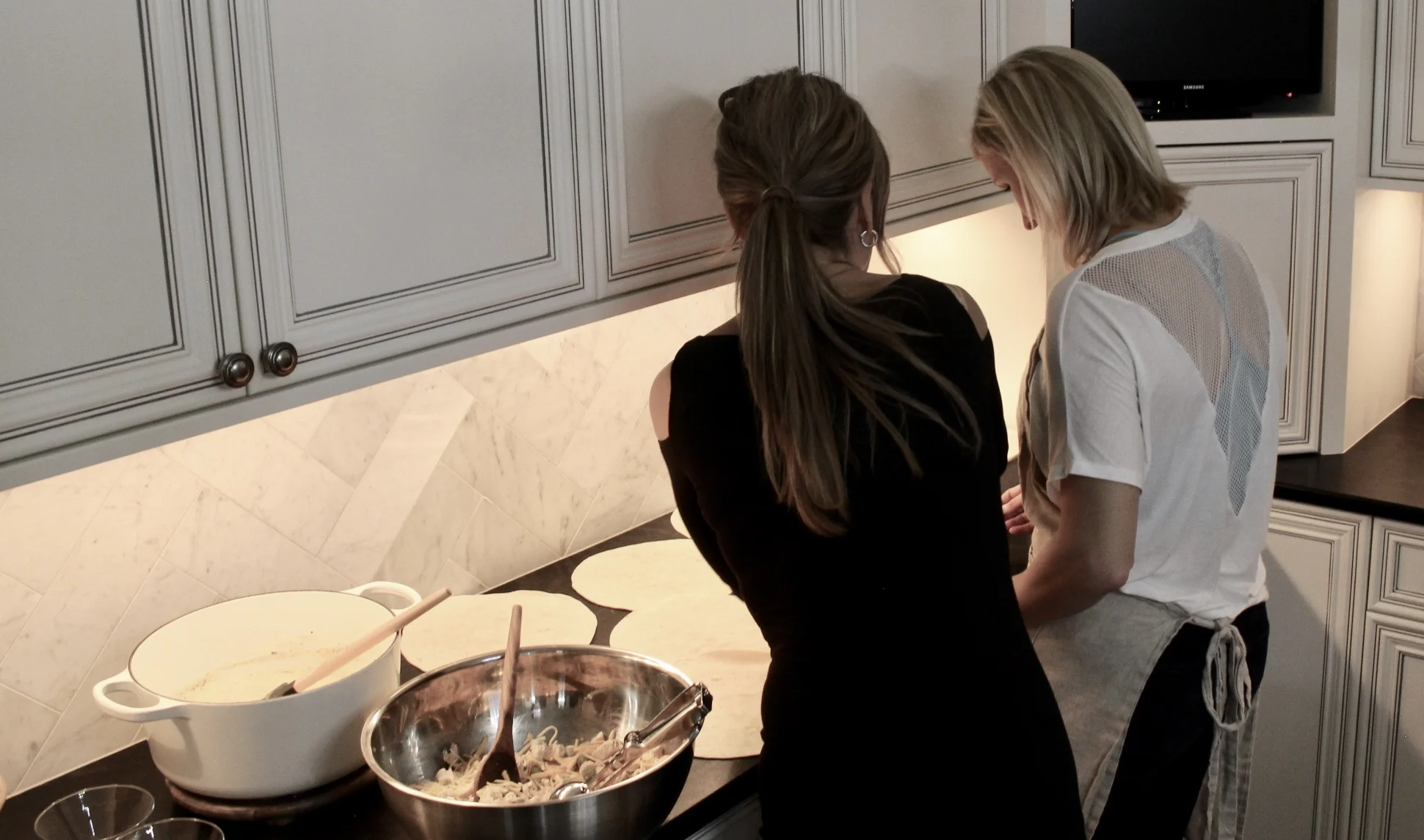 Last week, I welcomed a lovely group filled with both returning & new students. These ladies were in for a night of extravaganza; it was "Casa De Crème" night! They came hungry for an equally exciting and delicious evening enjoying Chips & Roja Salsa, Mexican Haystacks, Creamy Verde Chicken Enchiladas, & Fried Ice Cream.