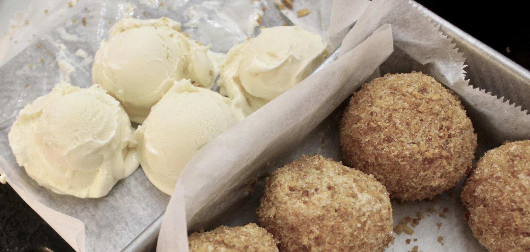 The best part of the fried ice cream: the topping! Buttery, crunchy deliciousness... (Thanks for the help crushing the cereal!)