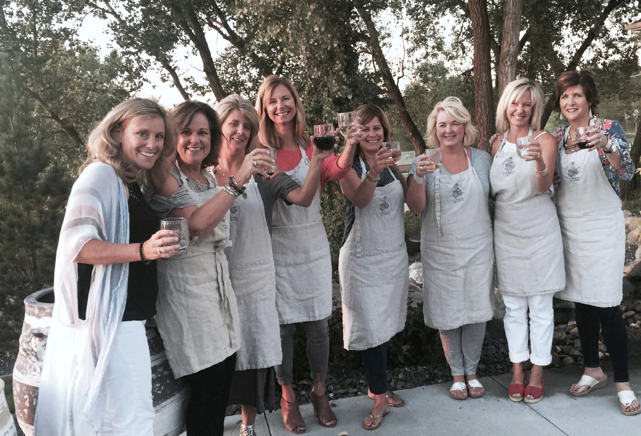 Every time I get asked to teach this menu, I get a smile on my face. I mean, who doesn't want to know how to make an herb encrusted, juicy, beautiful roast chicken? (Am I right?!) And to tell you the truth... I am beginning to think that most people do! This group of 8 amazing women walked though my door to help celebrate a dear friend's 50th birthday party. (Did I mention I love birthday parties too?) They learned the secrets of my chicken, along with Artichoke Cheese Squares for an appetizer, a flavor packed Spring Veggie Tart, and then finally a super moist, SUPER decadent carrot cake baked in a mason jar. Yes please.