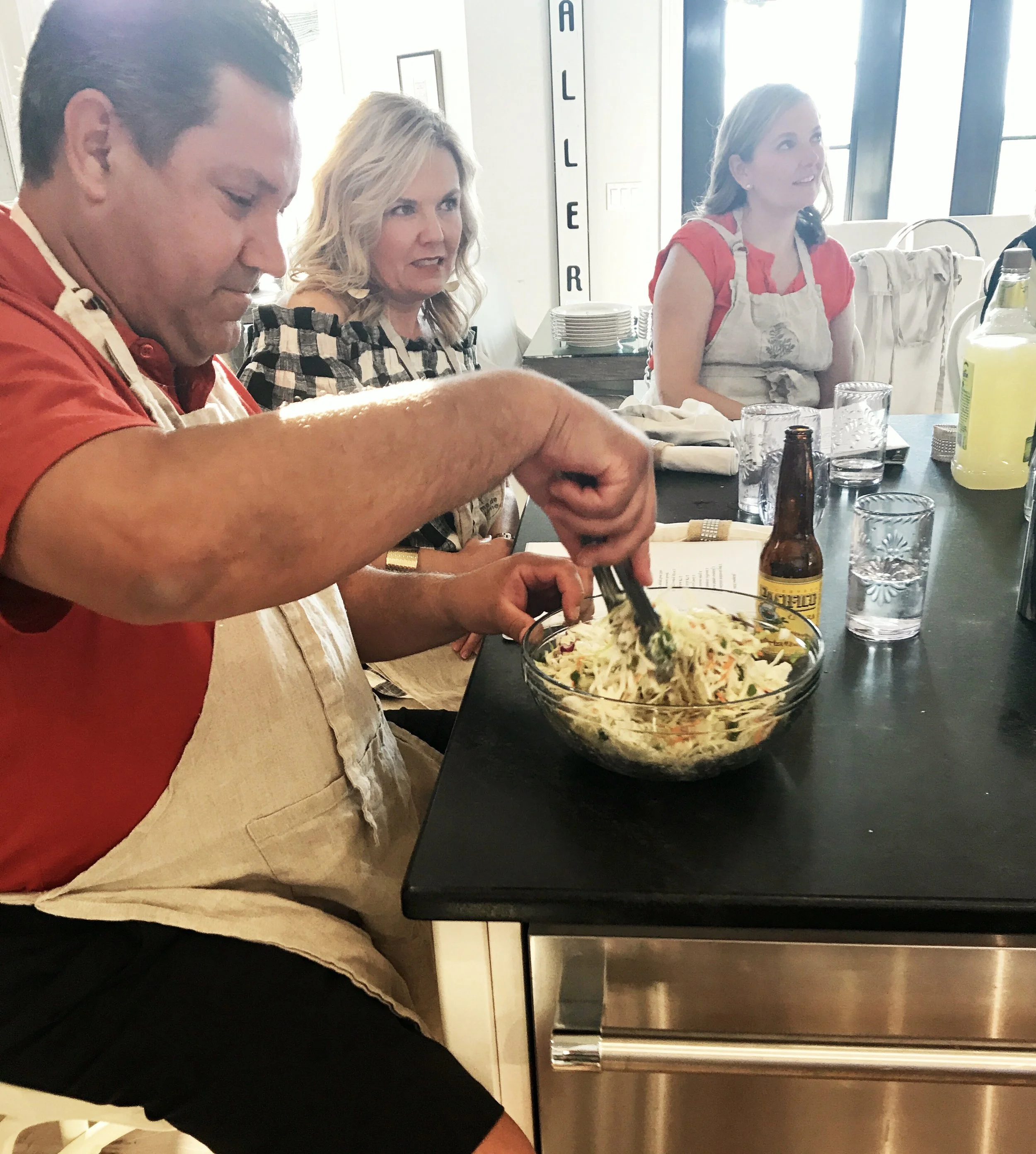 Another one of these wonderful fathers got his hands dirty as we moved onto my jalapeño slaw. This provides a crisp and fresh flavor while adding a little extra spice to the evening...and pork tacos!